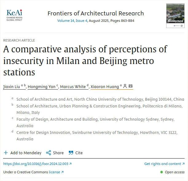 聚焦于地下公共交通空间的安全感知差异,以米兰和北京的地铁站为案例,系统探讨了新旧地铁站中视觉环境要素对乘客安全感的影响机制,并揭示不同城市化模式(渐进式发展 vs. 快速扩张)对地铁系统设计与安全感知的深层次关联。具体研究内容包括: